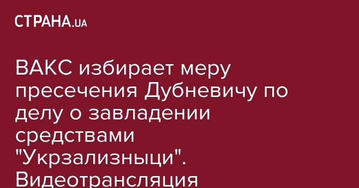 ВАКС избирает меру пресечения Дубневичу по делу о завладении средствами "Укрзализныци". Видеотрансляция