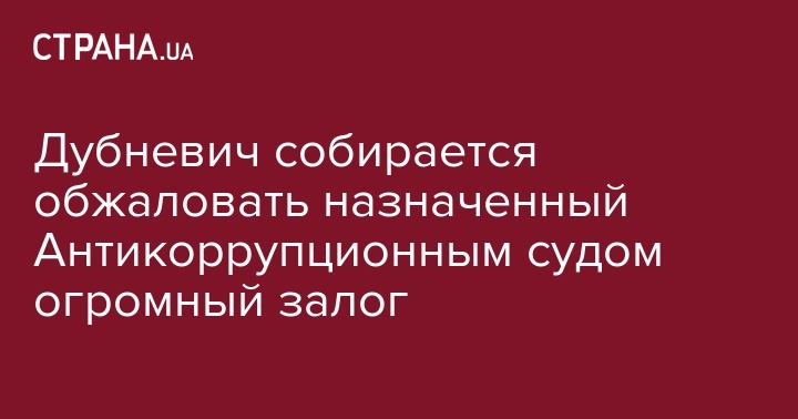 Дубневич собирается обжаловать назначенный Антикоррупционным судом огромный залог