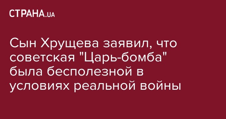 Сергей Хрущев, политолог и сын генсека ЦК КПСС Никиты Хрущева, заявил, что созданная в СССР водородная "Царь-бомба" была бесполезной для ведения войны. Он объяснил, почему это так в интервью радиостанции "Говорит Москва".