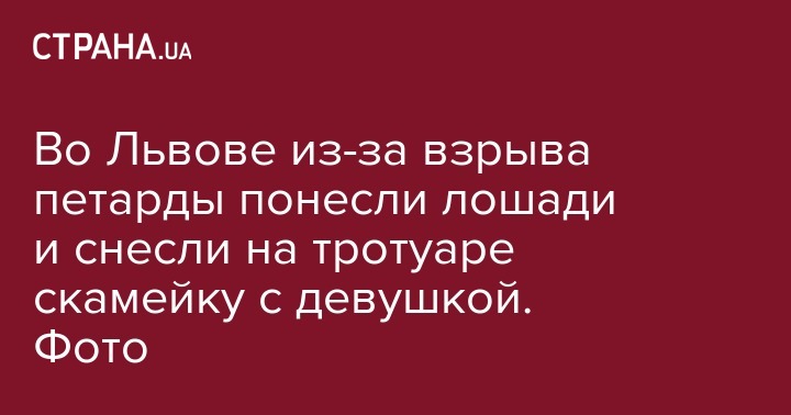 Во Львове произошло необычное ЧП. Здесь лошади, которые были запряжены в прогулочную карету, испугались взрыва петарды и понесли. Карета вылетела на тротуар и снесла скамейку, на которой сидела 15-летняя девушка. Об этом сообщает местное издание Zaxid.net.