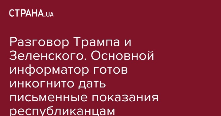 Разговор Трампа и Зеленского. Основной информатор готов инкогнито дать письменные показания республиканцам