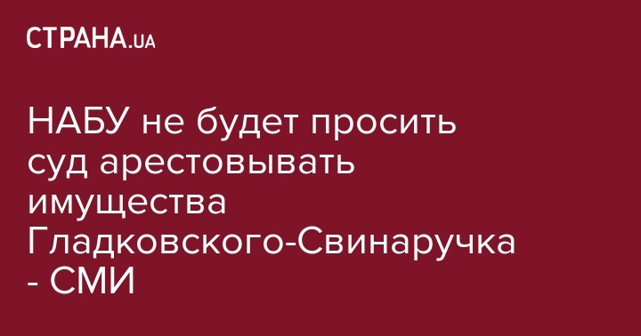 НАБУ не будет просить суд арестовывать имущества Гладковского-Свинаручка - СМИ