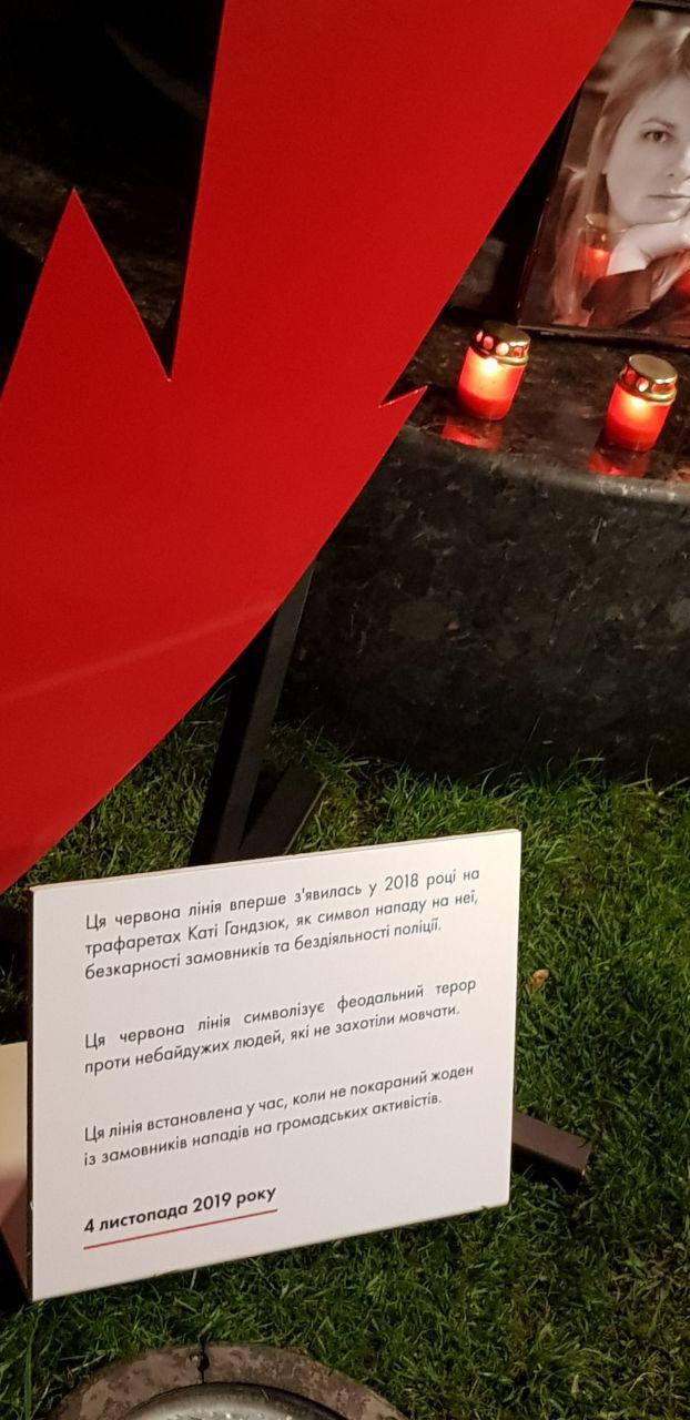 Также под Офисом президента установили "красную линию" в честь памяти Кати Гандзюк.