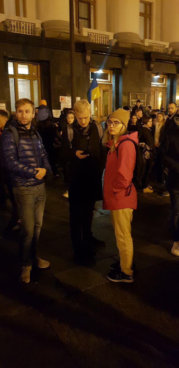 В большей степени на митинг собрались люди, возрастом от 25 лет, их насчитывается около 300 человек. Однако около 25% из них - это СМИ. Также среди участников акции была замечена бывшая и.о. главы Минздрава Ульяна Супрун и праворадикал Сергей Стерненко. Кроме тогою, мероприятие посетили бывший нардеп Игорь Луценко и глава "Центра противодействия коррупции" Виталий Шабунин. Охрану порядка обеспечивает полиция диалога, в составе не больше 20 человек. Под зданием "Будинок з химерами" установили экран с надписью "Год без Кати", звучит печальная инструментальная музыка.