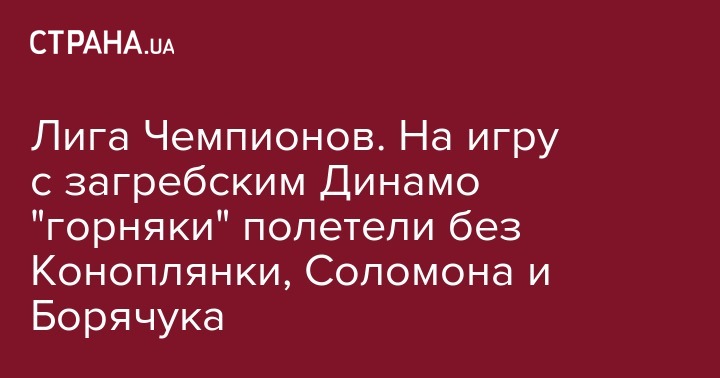 Лига Чемпионов. На игру с загребским Динамо "горняки" полетели без Коноплянки, Соломона и Борячука