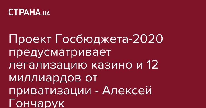 "Драйвером нашего развития будут и малая, и большая приватизация... Мы рассчитываем также, что парламент поддержит законопроект о легализации азартных игр", - пояснил Гончарук в Киеве, представляя документ в правительстве.