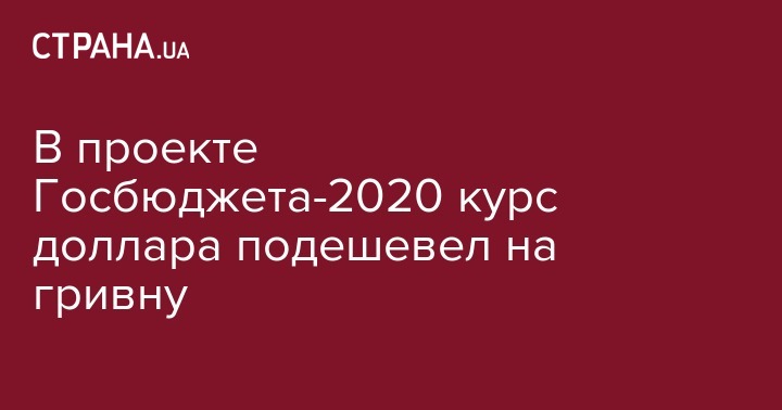 В проекте Госбюджета-2020 курс доллара подешевел на гривну