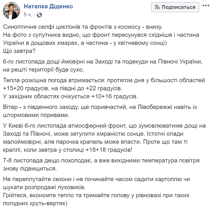 Напомним, что октябрьское "бабье лето" в Киеве было коротким из-за туманов.