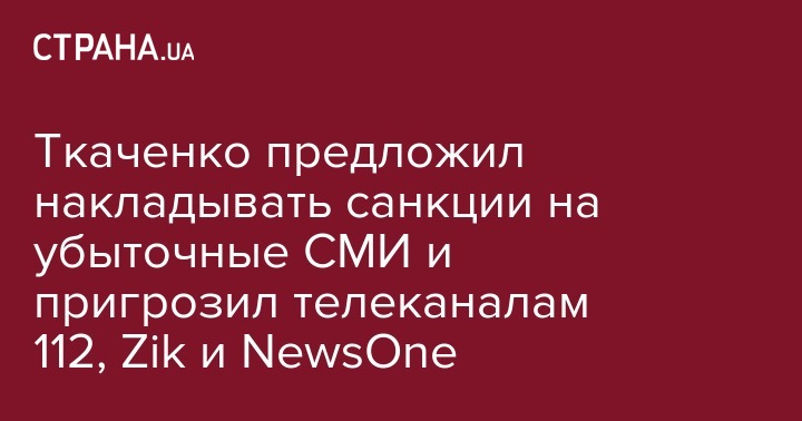 Ткаченко предложил накладывать санкции на убыточные СМИ и пригрозил телеканалам 112, Zik и NewsOne