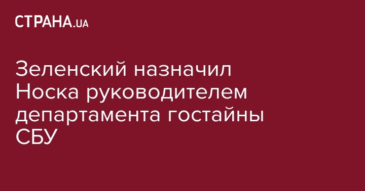 Президент Украины Владимир Зеленский назначил Игоря Носка начальником Департамента охраны государственной тайны и лицензирования Службы безопасности Украины (СБУ). Об этом говорится на сайте главы государствы.
