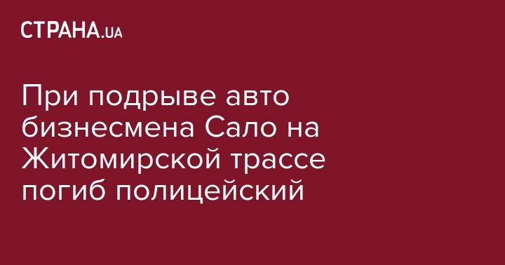 Погибшим вчера, 6 ноября, при взрыве автомобиля на Житомирской трассе оказался 40-летний сотрудник полиции, который осуществлял физическую охрану крупного бизнесмена Игоря Сало согласно официального договора. Об этом сообщается на сайте столичной полиции.