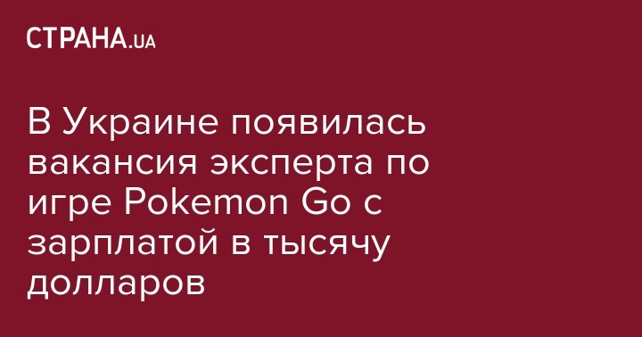 В Украине появилась вакансия эксперта по игре Pokemon Go c зарплатой в тысячу долларов