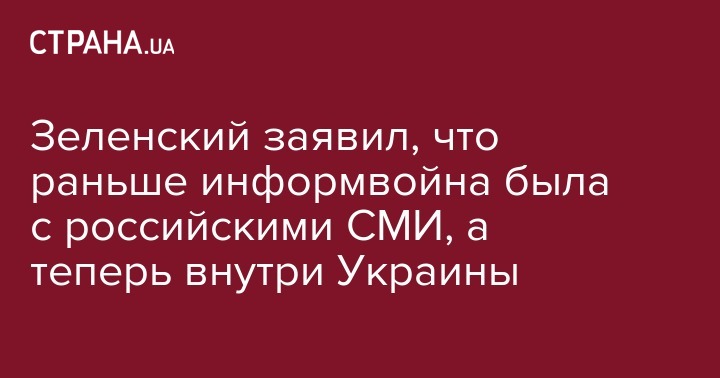 Зеленский заявил, что раньше информвойна была с российскими СМИ, а теперь внутри Украины