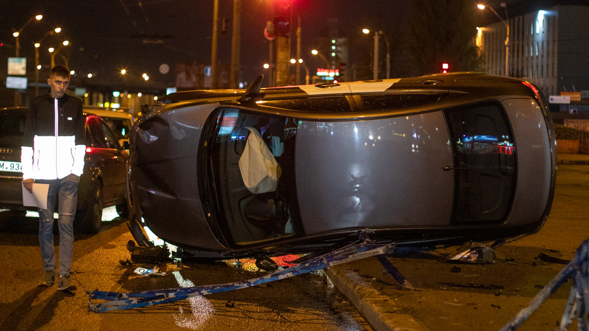 По словам водителя Hyundai, он двигался с разрешенной скоростью по проспекту Степана Бандеры со стороны Куреневки. Перед ним ехал автомобиль, который резко затормозил. Водитель Accent, чтобы не влететь в него, также затормозил, но на мокрой дороге его занесло. Машина вылетела с дороги, снесла около 15 метров железного ограждения и перевернулась.