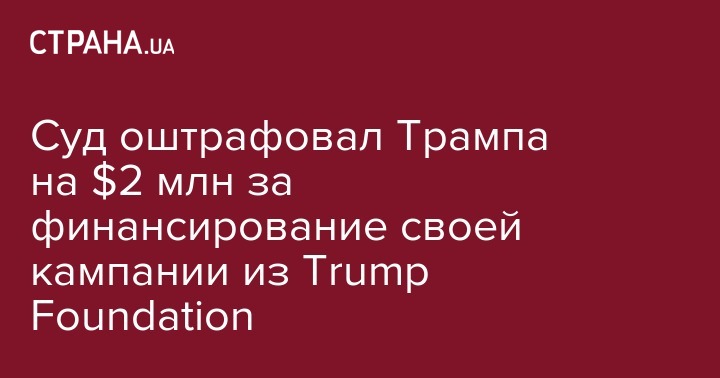 Суд в Нью-Йорке обязал президента США Дональда Трампа выплатить 2 миллиона долларов ряду некоммерческих организаций, поскольку он использовал средства из своего благотворительного фонда Donald J. Trump Foundation для финансирования избирательной кампании в 2016 году, сообщает CNN.