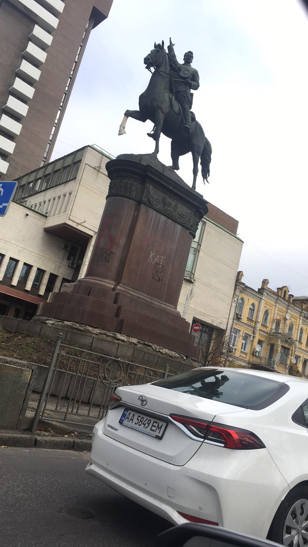 Щорс снова показался киевлянам. С памятника убрали банер-клетку. Фото