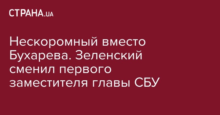 Президент Владимир Зеленский уволил Владислава Бухарева с должности первого заместителя председателя Службы безопасности Украины - начальника Главного управления по борьбе с коррупцией и организованной преступностью и назначил на эту должность Дмитрия Нескоромного.