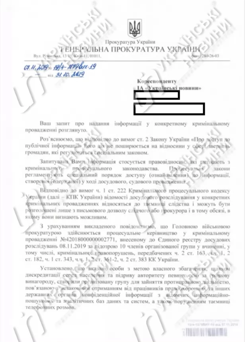 Об этом сообщают "Украинские новости" со ссылкой на ответ Генпрокуратуры.