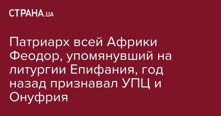 Блаженнейший патриарх Александрийский и всей Африки Феодор II 8 ноября во время литургии в храме в Каире упомянул имя главы ПЦУ Епифания. Между тем еще год назад он заявлял, что главой канонической церкви является митрополит Киевский и всея Украины Онуфрий, и призывал держаться УПЦ.