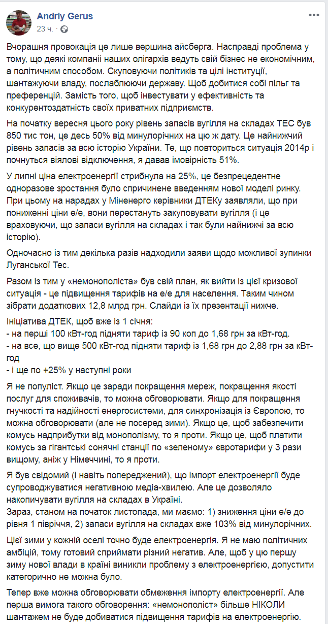 Скриншот: Facebook/ andriy.gerus