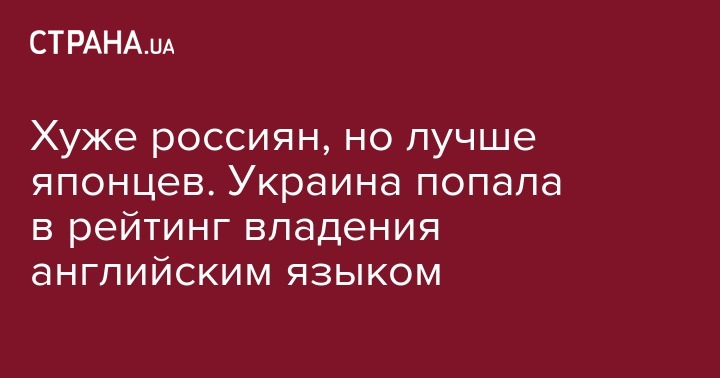 Согласно рейтингу, уровень владения английским языком у взрослого населения в Украине ниже среднего мирового уровня. Все соседние страны, кроме Молдовы (ее нет в исследовании), находятся выше по рейтингу. Польша - 11, Венгрия - 15, Румыния - 16, Словакия - 25, Беларусь - 47, Россия - 48. К слову, Япония оказалась лишь на 53 месте.