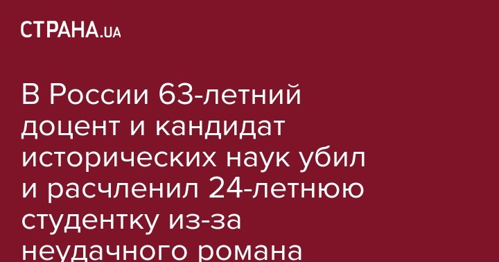 В России 63-летний доцент и кандидат исторических наук убил и расчленил 24-летнюю студентку из-за неудачного романа