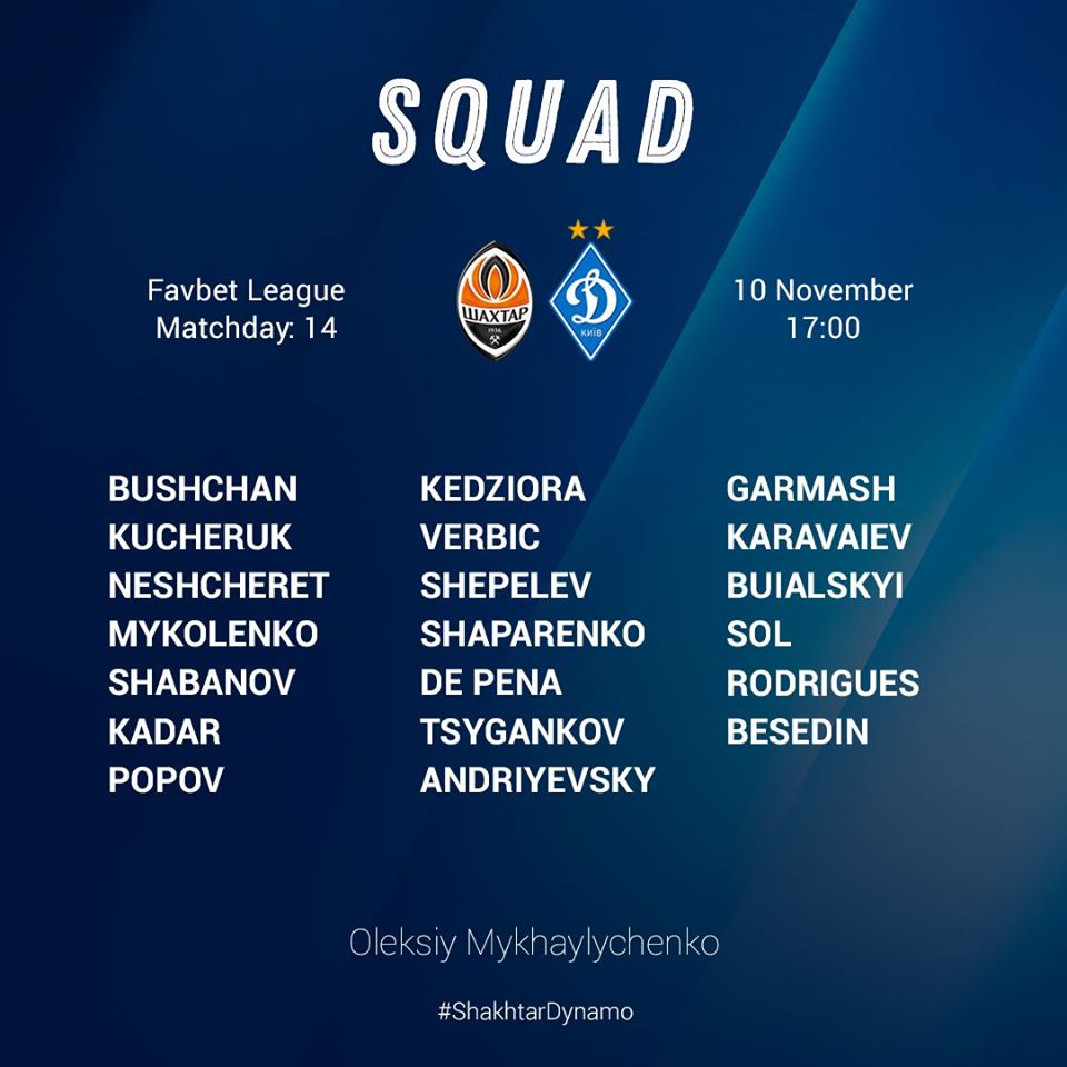 Тренер киевского клуба Алексей Михайличенко взял на игру 20 футболистов. Для "Динамо" это важный "бой", поскольку в таблице команда отстает от конкурента на целых 10 очков.