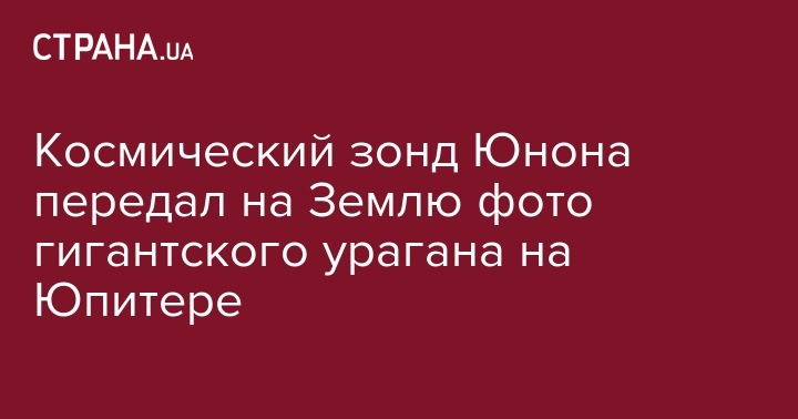 Межпланетная станция "Юнона" передала Земле снимок еще одного гигантского урагана на Юпитере. Об этом сообщает NASA.
