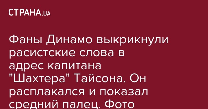 На 75-й минуте противостояния кто-то из болельщиков "Динамо" выкрикнул что-то расистское в адрес Тайсона, капитана "горняков". Фразу расслышать не удалось. Бразилец заплакал и показал в ответ средний палец. Ему выписали красную карточку, а затем он удалился в раздевалку. Матч возобновили спустя 3 минуты.