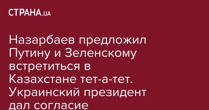 Первый президент Казахстана Нурсултан Назарбаев предложил провести переговоры глав России и Украины Владимира Путина и Владимира Зеленского в Казахстане. Об этом сообщает РИА "Новости".
