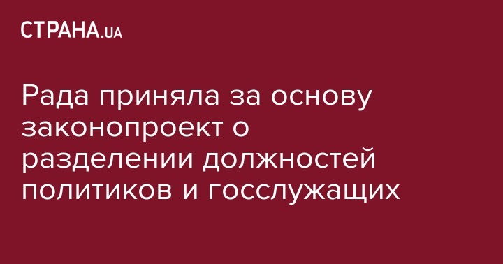 Верховная Рада поддержала в первом чтении законопроект № 2260, направленный на разделение должностей политиков и госслужащих. Об этом свидетельствует статус документа на сайте парламента.