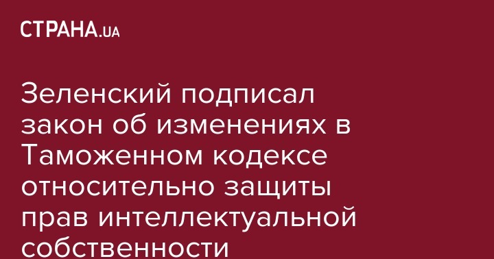 Зеленский подписал закон об изменениях в Таможенном кодексе относительно защиты прав интеллектуальной собственности
