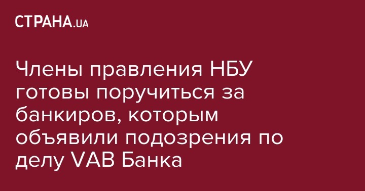 Все правление НБУ готово выступить поручителями восьмерых банкиров, которым НАБУ сообщило о подозрении в завладении 1,2 млрд грн "VAB Банка", выделенных в качестве стабилизационного кредита. Об этом заявила первый замглавы Нацбанка Екатерина Рожкова на своей странице в соцсети.