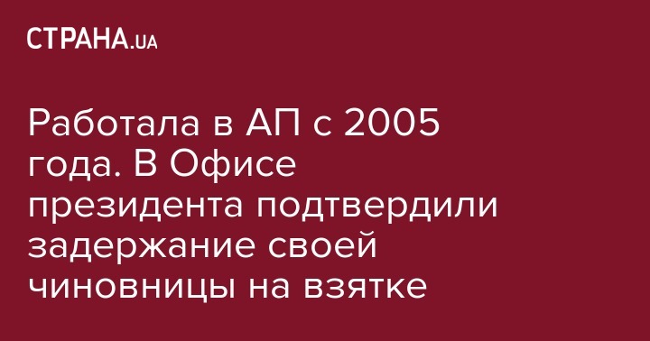 Работала в АП с 2005 года. В Офисе президента подтвердили задержание своей чиновницы на взятке