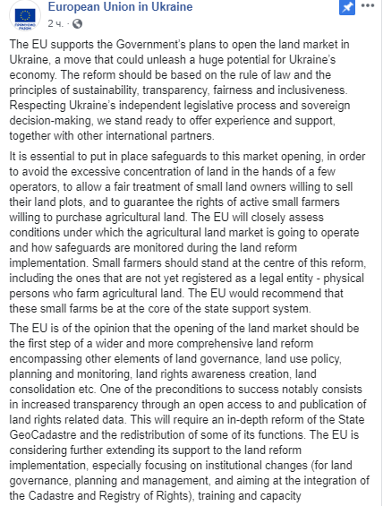 У Путина есть рынок земли с 2001 году, у поляков есть рынок земли, у венгров есть рынок земли. Они что лучше, чем украинцы? Сколько можно думать. Мы предложили нормальный взвешенный законопроект, президент предложил взвешенный компромисс. Мы услышали каждого".