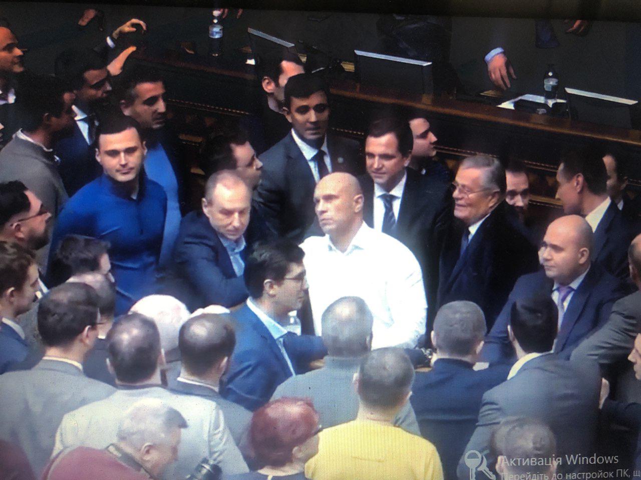 14:40 "Оппозиционная платформа" заблокировала трибуну Рады. Однако Разумков разрешил выступать с места.