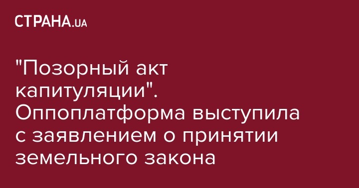 "Этот позорный акт капитуляции был принят вопреки воле подавляющего большинства украинских граждан, с нарушением регламента работы Верховной Рады и всех законодательных процедур. Власть не захотела прислушаться ни к мнению фермеров, ни к доводам оппозиции, ни к протестам людей. Зе-марионетки в парламенте в очередной раз послушно нажали на кнопки", - говорится в сообщении.
