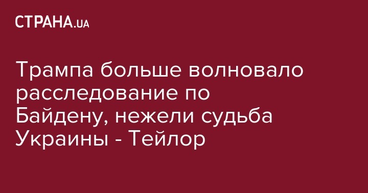 Дипломат отметил, что вспоминает, как его помощник спросил о разговоре. "Посол Сондленд ответил, что президент Трамп больше беспокоится о расследовании по Байдену, на котором настаивал Джулиани", - сказал Тейлор. Позже он уточнил, что это означает, что Трамп, по его мнению, больше беспокоился о расследовании, чем об Украине.
