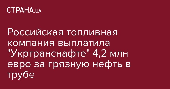 Украинская компания "Укртранснафта" уже получила в качестве компенсации за грязную нефть в трубопроводе 4,2 млн евро от российского ОАО "Транснефть". Об этом сообщает пресс-служба нашей компании в Facеbook.