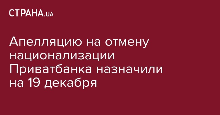Апелляцию на отмену национализации Приватбанка назначили на 19 декабря