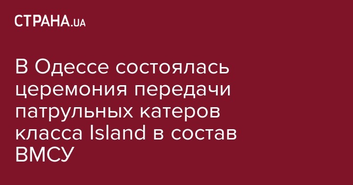 В среду, 13 ноября, в Одессе прошла торжественная церемония включения патрульных катеров класса Island в состав Военно-морских сил Украины. По информации заместителя одесского городского головы Андрея Котляра, мероприятие проходило при участии командующего Военно-морскими силами Украины Игоря Воронченко, а также старшего советника председателя дипломатии США в Украине Джозефа Пеннингтона. Об этом сообщает 112 Украина.