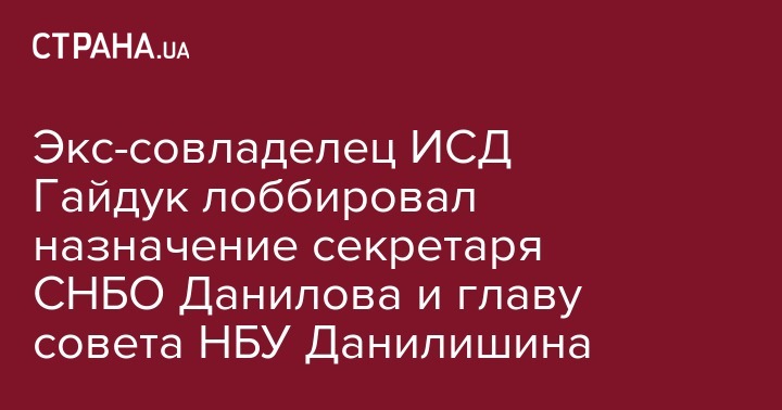 Экс-совладелец ИСД Гайдук лоббировал назначение секретаря СНБО Данилова и главу совета НБУ Данилишина