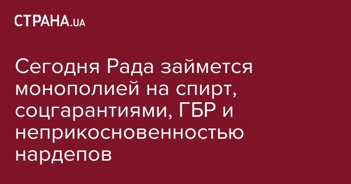 В частности ожидается, что народные депутаты рассмотрят в первом чтении внесенный президентом Украины законопроект №2300 о внесении изменений в закон "О государственном регулировании производства и оборота спирта этилового, коньячного и плодового, алкогольных напитков, табачных изделий и горючего". Документ призван отменить государственную монополию на производство спирта и способствовать детенизации рынка спирта и ликеро-водочной продукции.