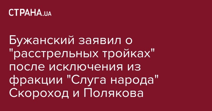 Нардеп "Слуги народа" Макс Бужанский связал процесс исключения нардепов Анны Скороход и Антона Полякова из фракции со сталинскими тройками НКВД (внесудебные органы уголовного преследования, действовавшие в СССР в 1937-1938 годах и вынесшие много смертельных приговоров - Ред.). Об этом Бужанский написал в Telegram.