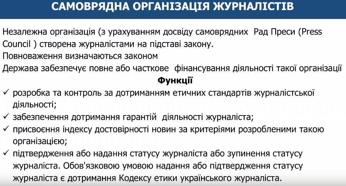 В презентации сказано, что самоуправляемую организацию журналистов "полностью или частично финансирует государство", то есть это зависимый от государства орган.