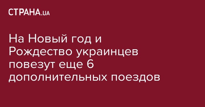 "Укрзализныця" (УЗ, Киев) назначила шесть дополнительных поездов для перевозки пассажиров во время новогодних и рождественских праздников. Об этом сообщается на сайте ведомства.