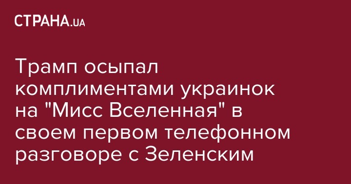 Украина всегда была хорошо представлена ​​на конкурсе красоты "Мисс Вселенная", заявил президент США Дональд Трамп в первом телефонном разговоре с Владимиром Зеленским. Об этом стало известно из опубликованного сегодня меморандума телефонного разговора лидеров двух стран 21 апреля.