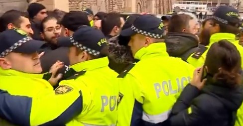 "У офиса "Грузинской мечты", где проходит заседание большинства, ситуация обострилась еще раз. Между участниками акции и полицией произошла стычка", - говорится в сообщении.