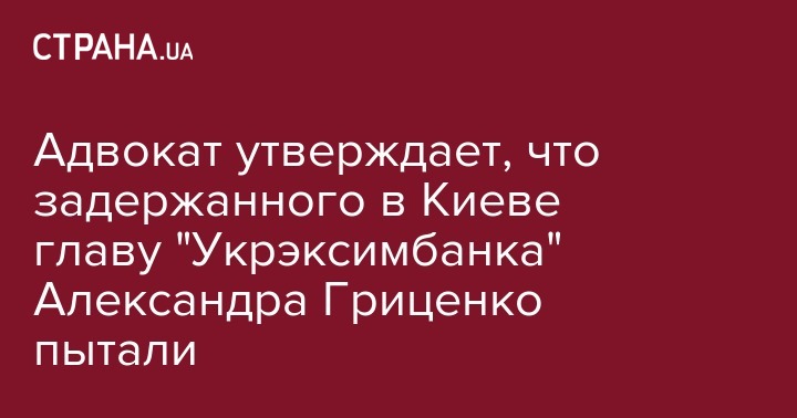 Адвокат главы "Укрэксимбанка" Александра Гриценко Денис Галанский заявил, что его подзащитного задержали с нарушением закона и пытали. Об этом передает "Интерфакс-Украина".