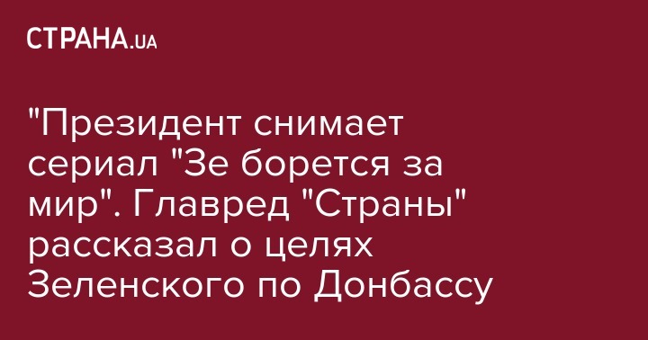 "Президент снимает сериал "Зе борется за мир". Главред "Страны" рассказал о целях Зеленского по Донбассу